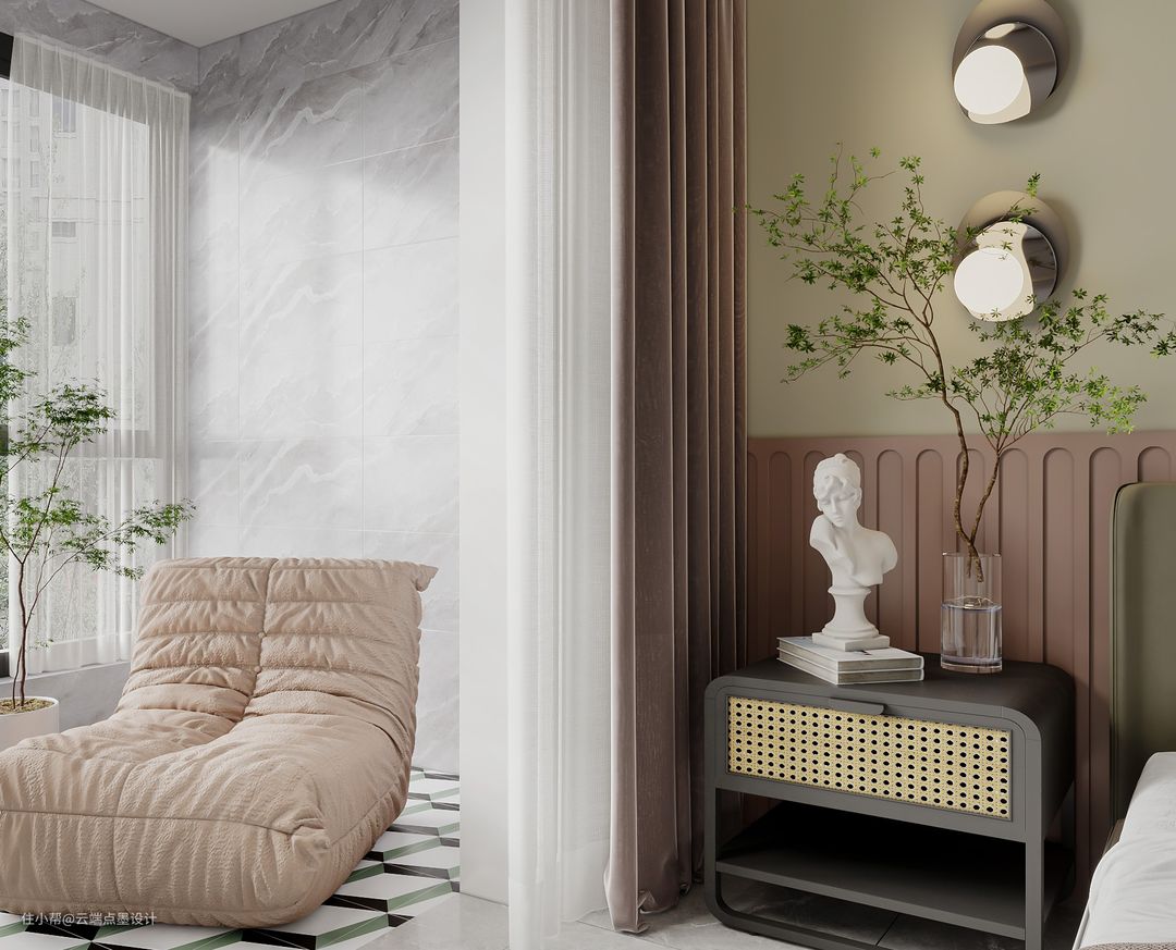 藤编与床头柜的组合,于精致中显露着自然,每天坐在窗前听听风声,吹散笼罩身心的烦恼,即拥有了缓解压力的魔力。