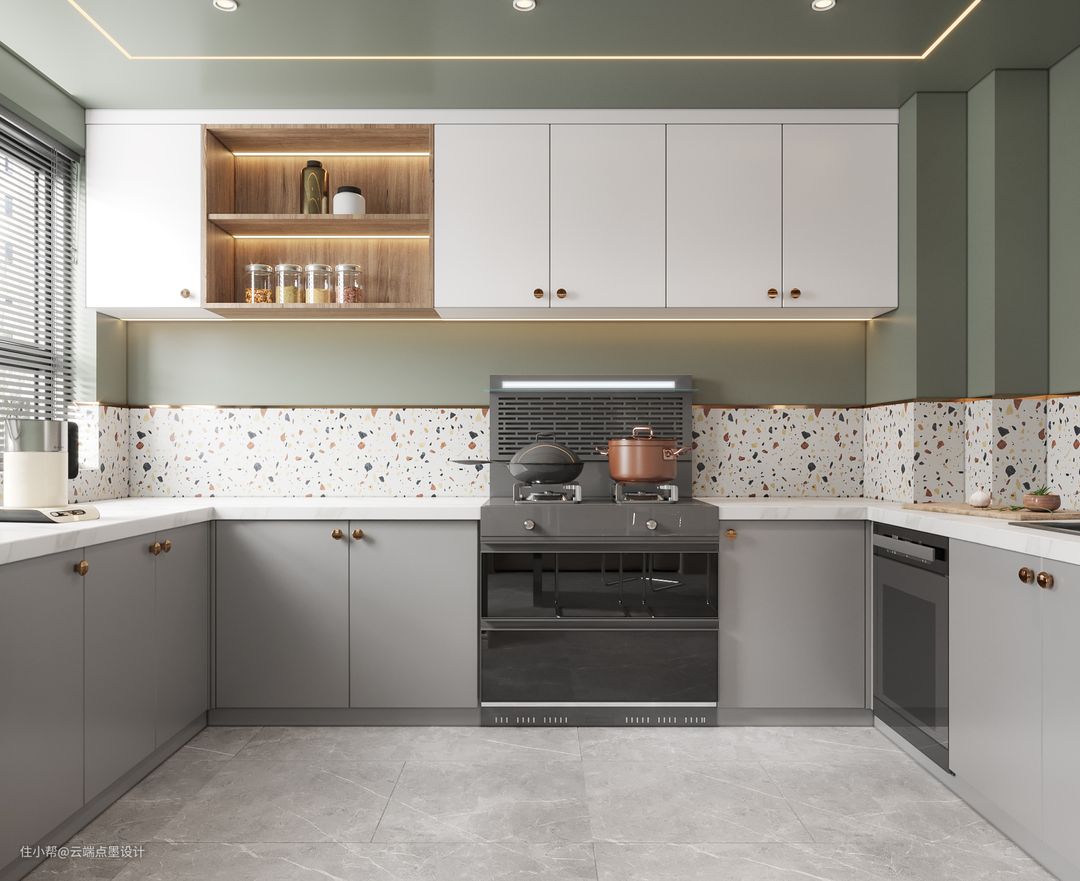 厨房空间宽阔而不狭窄,设计动线合理、操作方便,整体风格也和这个家和谐的融为一体。