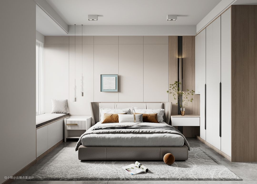 温馨的色彩和木质的纹理和谐交融,在光线的映衬下给人一种柔和慵懒的感觉。整体呈现出简单而不失品味的满满温情。