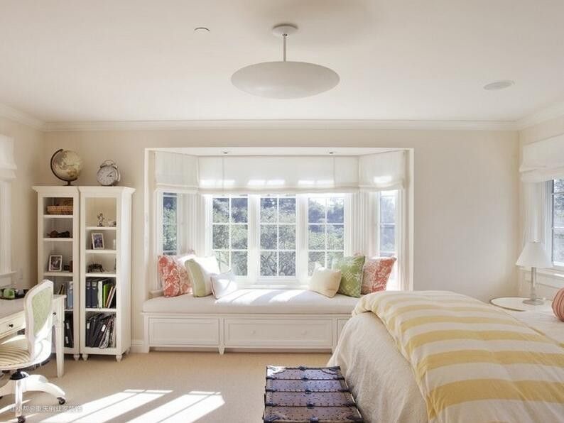 我们都知道,飘窗之所以受欢迎,有一个很重要的原因就是窗台非常实用,可以设计将窗台布置成休憩的场所,装饰效果上也很突出。