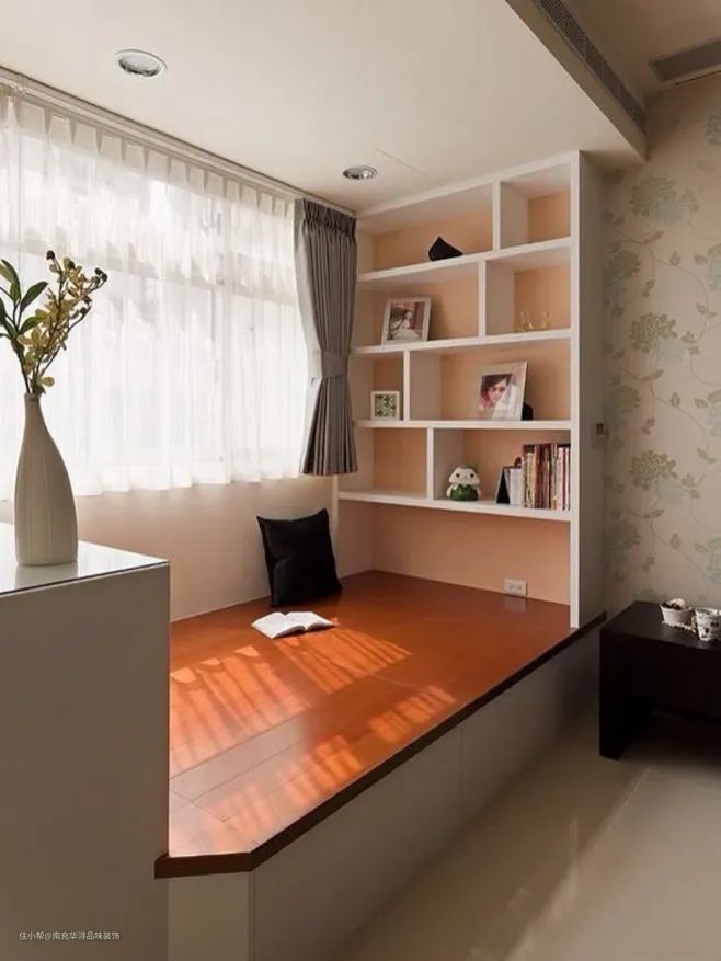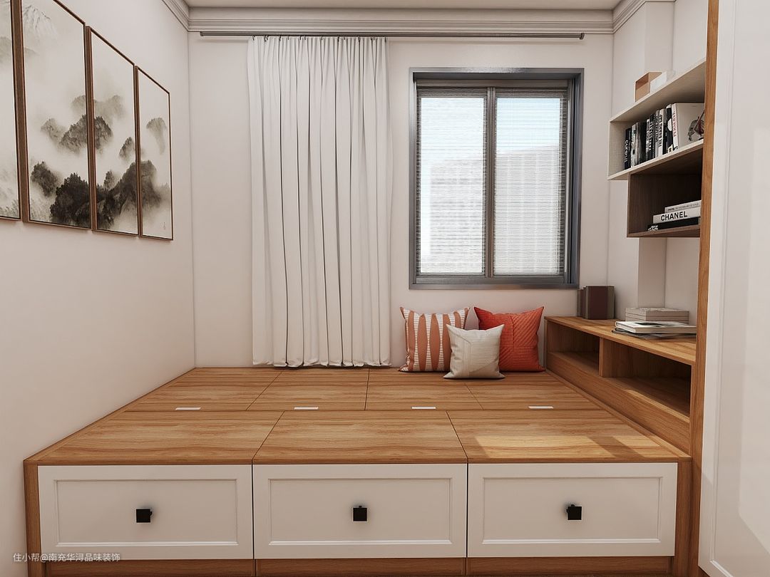 中国特色的榻榻米,当然不全是日本和式的榻榻米。我们可以取其精髓,全力发挥。仿照和式房间,整个地面都做成榻榻米。白天可以用作娱乐区或者小书房,晚上可以当客房用。