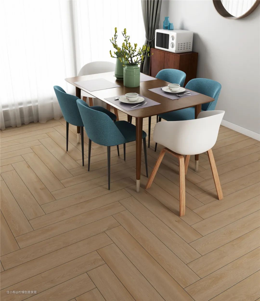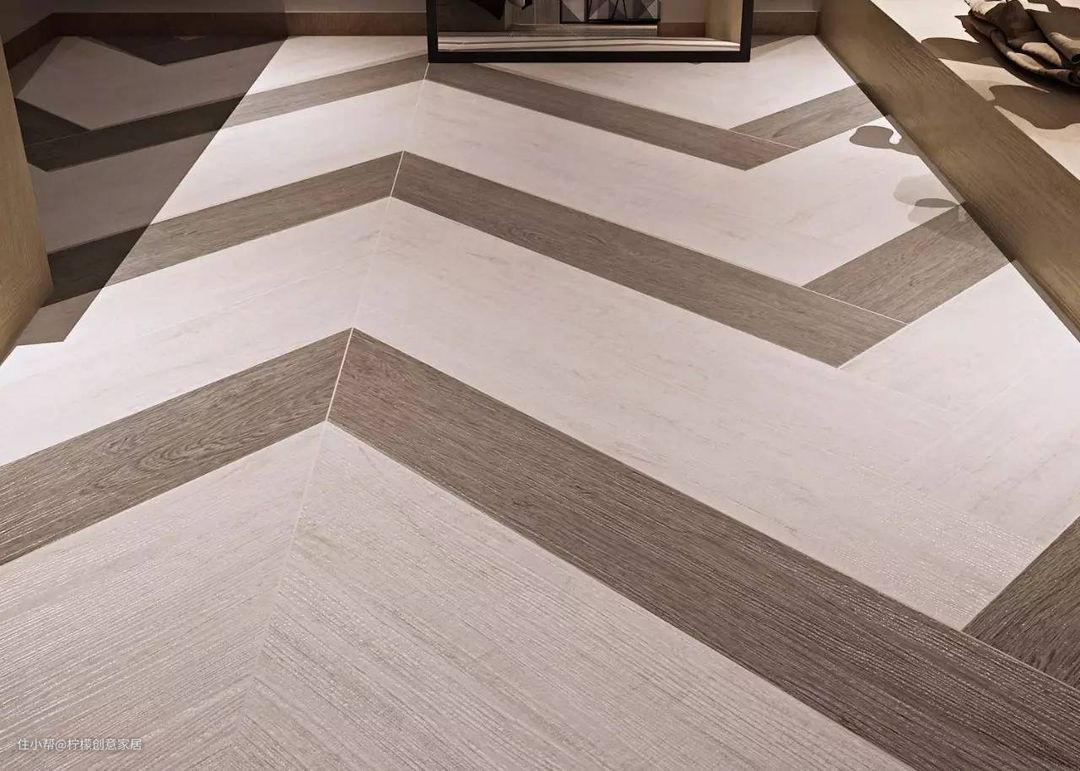 我们家装修的时候用的是人字铺贴的样式。木纹砖的色调温润,与原木色和灰色搭配,效果极佳。铺好之后感觉整体效果简约规整,地面富有立体感,看着也挺舒服的,上档次。选择鱼尾辫铺贴也是不错的选择,一丝一缕像鱼骨一样排列下来,比木地板的纹路要俏皮不少,时尚中带有一丝典雅。