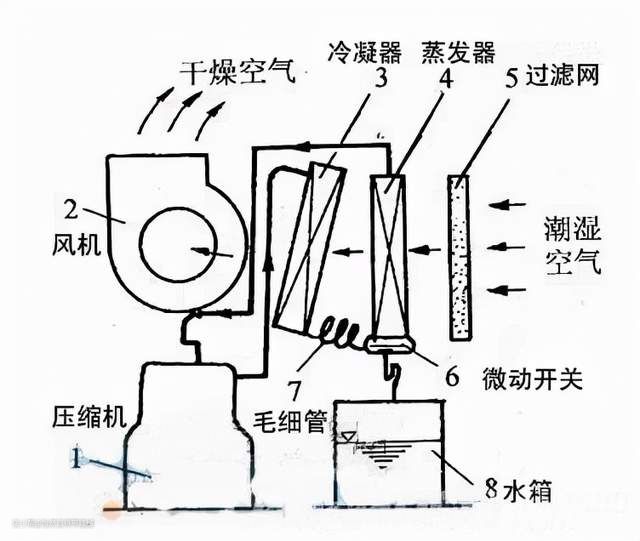除湿机的工作过程简单来说就是:潮湿空气经过蒸发器→冷凝器→风机处理,潮湿空气被抽入除湿机内后,其中的水分子冷凝结成水流入水箱,再排出干燥空气。在这个过程里面,压缩机起到了至关重要的作用,而业内最好的压缩机大多数都来自日本,尤其以有多年生产经验、海外占有率非常高的松下压缩机最为优秀,在噪音控制上做的特别好,而欧美的压缩机技术相比则略逊色,做的比较笨重,而且噪音会更大些。