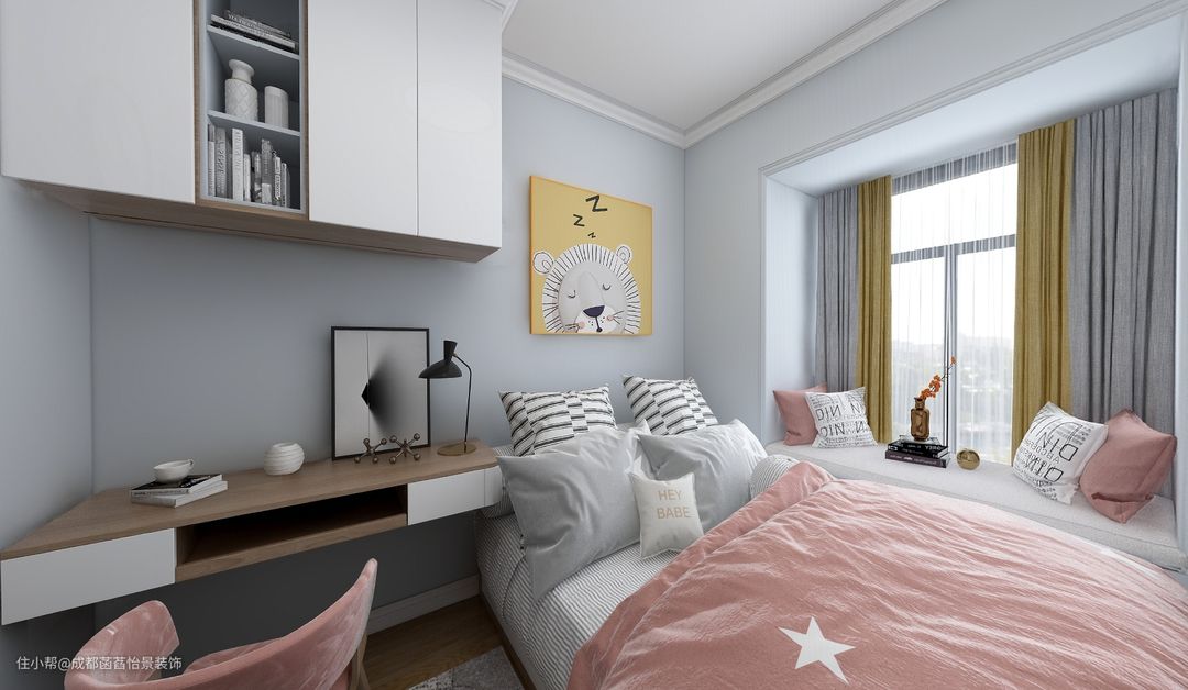 儿童房是做的榻榻米设计,将床设计得与窗台齐平,书桌与书柜,收纳与休闲都兼备的空间,成为孩子独立的私人天地。