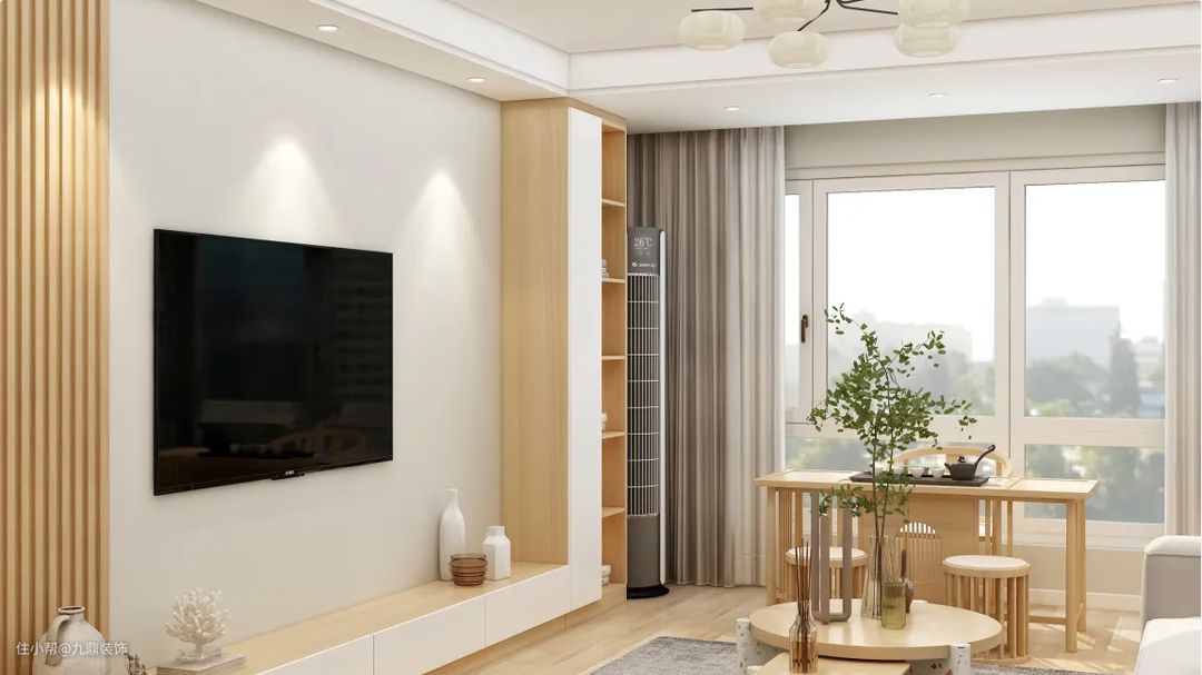 日式简约风格装修的特点是简洁和淡雅,它通过素雅的墙面设计和简洁的家具摆放,能带给人一种宁静感和舒适感,体现惬意的生活。