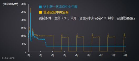 按照国家压缩机制冷设备质量监督检查中心的测试数据,同样是16kw,搭配五台室内机的中央空调,在室外温度30℃,设定温度26℃的状态下测试。格力智睿开启8小时的耗电量是1.4kwh;传统一级能效的中央空调开启8小时的耗电量是4.7kwh。二者相比,智睿能够节能60%。