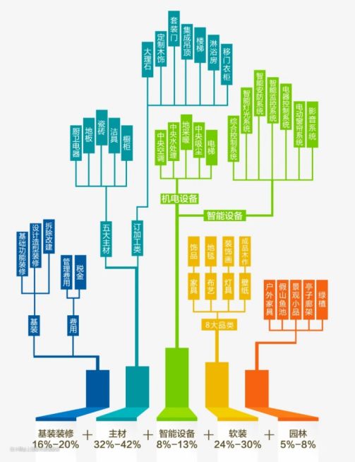 避免预算超支,首先要明白预算构成,其次是所用产品,要具体到详细的品牌和型号,一定要注意规避低价陷阱和免费陷阱。 一棵超级完整的预算树,告诉您预算的构成。后期装修中,要查询报价中材料的品牌、数量、单价等,让乱收费、隐形收费无所遁形,让您每一分钱都花的明明白白。