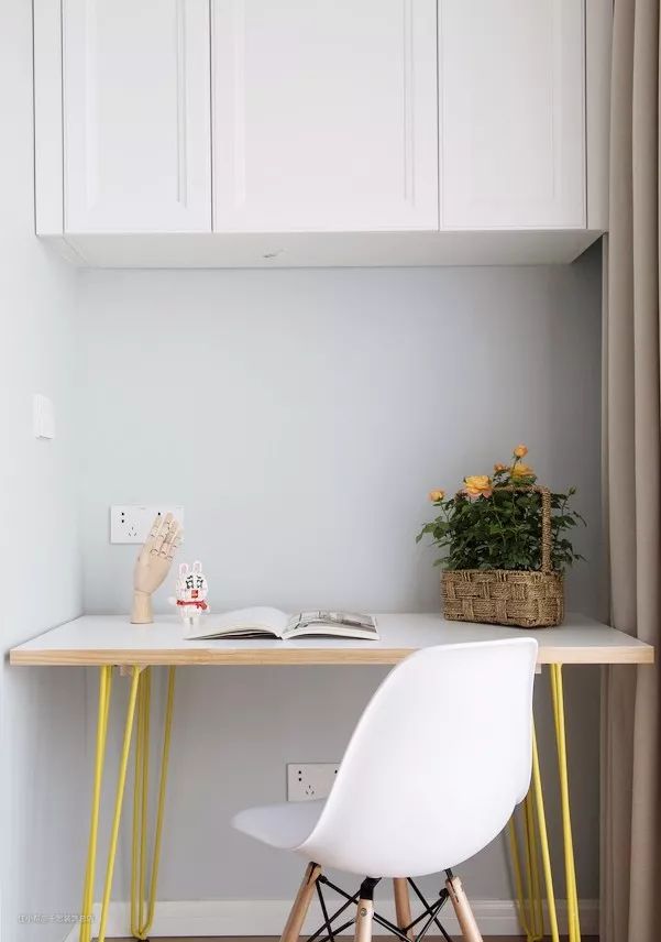 这些转角位置,安静又不占地方,只需要一张桌子,一张椅子,一盏灯,一个小书房就这样完成了。不需要专门一间单独的房间,就能拥有一间小书房了。