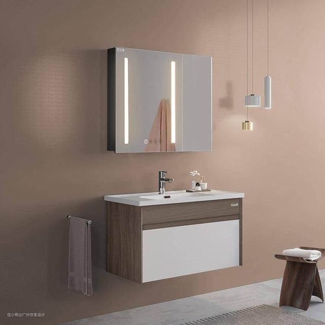 一般来说,现在市面上卖的浴室柜都会有一个镜柜相配套,浴室柜安装在洗手池下方,上方当然少不了一面镜子。但现在的镜子不单单只是一面镜子,而是做成了镜柜,镜子安装在柜门上,打开柜门就是储物空间,非常实用。