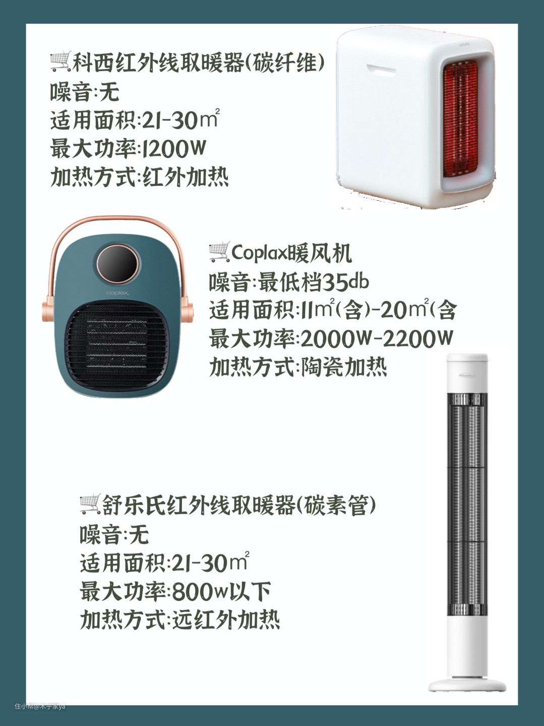 综合以上评测数据对比,我选了舒乐氏红外线取暖器,立式很小巧不占地,不要看它小,240°广角送暖,30㎡的空间都可适用,远红外碳素管加热,升温速度挺快的,对于我这种怕冷一回家就要开取暖器的人来说真不错。睡觉时轻松就拿到卧室来了,光线很柔和,声音挺安静不影响睡觉。而且超关键的是它是评测所有取暖器功率最小的,即使长期开着也费不了多少电费!