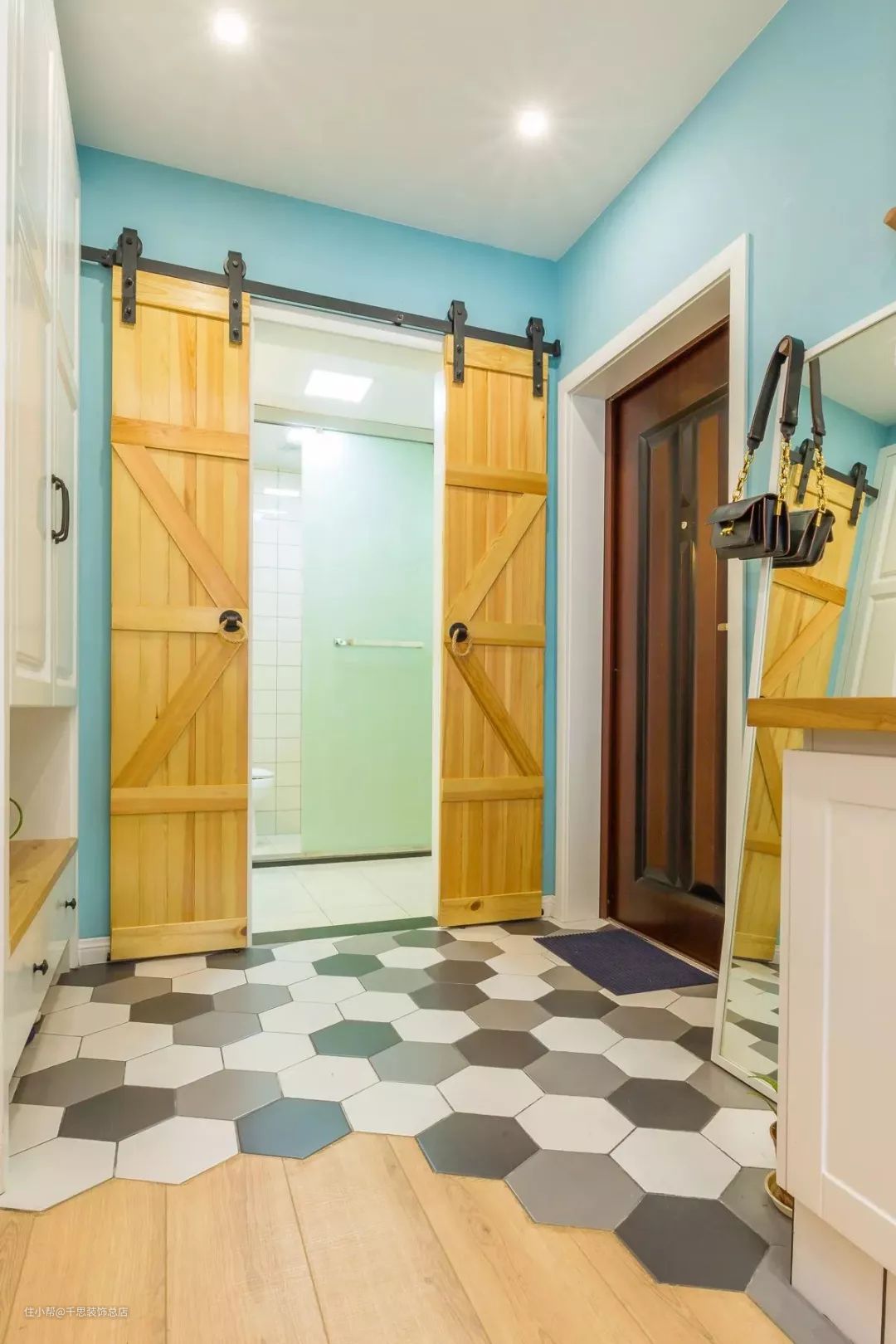 比起推拉门,吊轨门还带有装饰功能,款式多样,颜色也可以根据自己的喜好,刷成自己喜欢的颜色,搭配效果非常好。