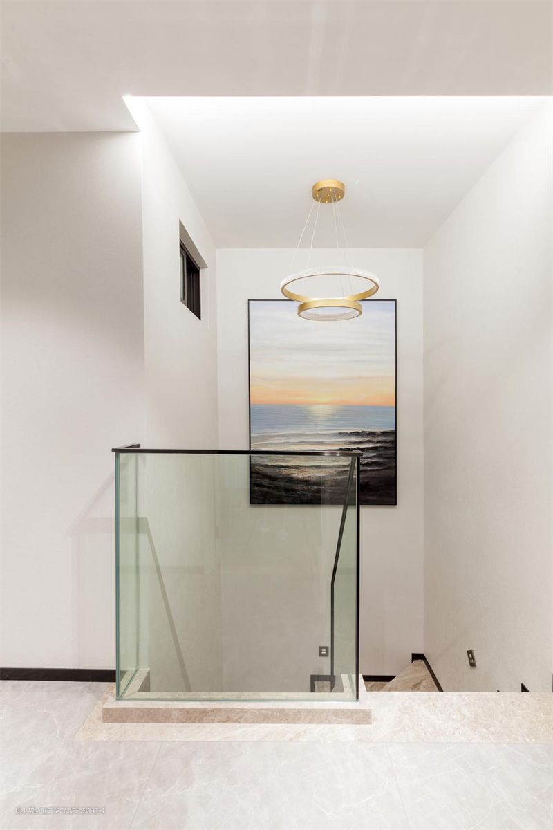 户型再小,也要有大格局,将舒适与温馨融入到每个空间,简单的线条配上装饰画,低调而素雅,通透的超白玻玻璃充当楼梯扶手,留给生活更多自由空间。