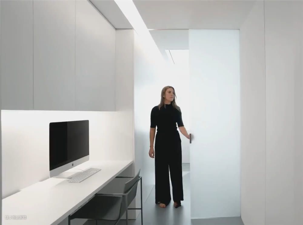 床下、床边都采用了隐藏式收纳柜,柜门平整,让整个屋内显得一尘不染,实话说看到这里,我的眼睛已经有点儿“雪盲症”了。