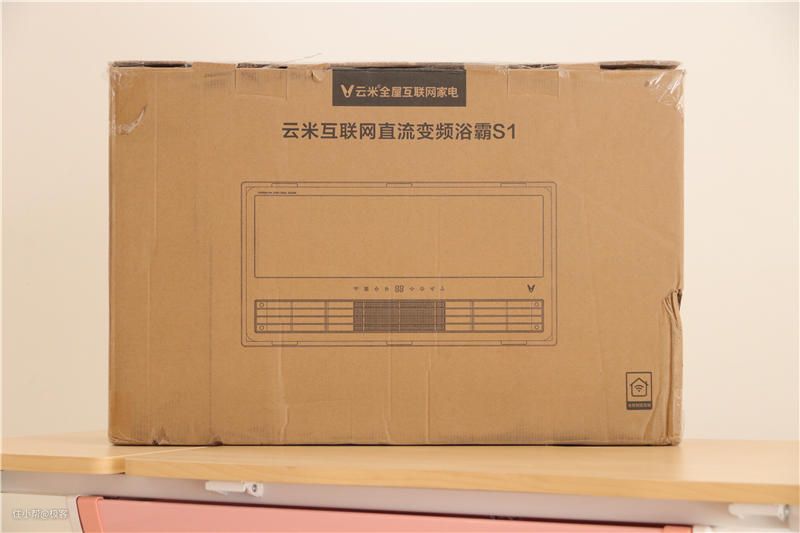 云米家的产品除了智能,就是性价比非常高。这款云米互联网直流变频浴霸S1就是这样的一款产品。我们先看下它的包装,采用了原色的纸箱,封面不仅有着产品的外观,还有着产品的名称,以及品牌LOGO 。