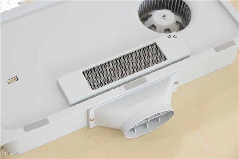 在主机的一侧则是它的进风口,这里需要安装铝箔波纹管,连接到窗外,方便换气使用。这款云米S1浴霸支持暖风和换气同时进行。在生活中,我们在洗浴的时候,雾气会充满整个房间,时间久了呼吸也会有闷闷的感觉,有了这个换气功能就好多了,在保证温度的前提下,还能将新鲜空气排进来。