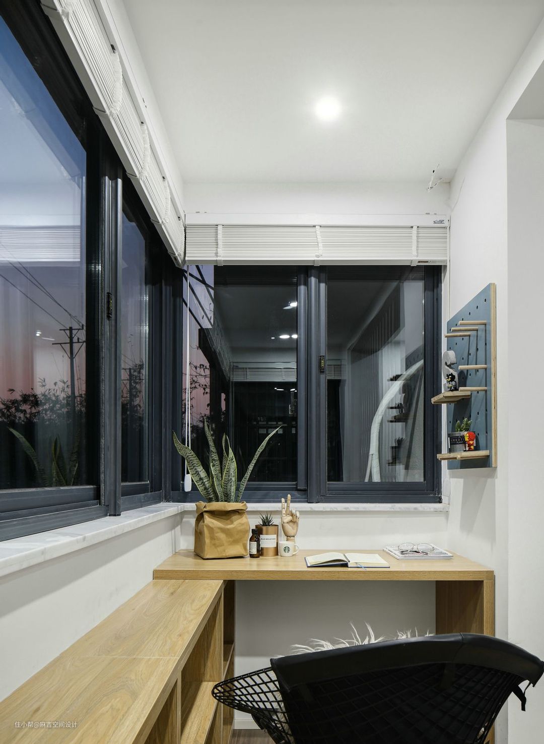 书房比较适合与卧室相连的阳台,只需要量好尺寸做书桌即可。需要安装优质的遮光帘,最好是选用纱帘+遮光帘,舒缓光线的直射;阳台需要密封好,采用双层中空隔音玻璃,打造静谧的学习空间;选择防水性能好,不易变形的家具,避免受潮受雨。