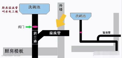 2、厨房返回做溢流管,就是在厨房的下水管低端用三通接一根溢流,通道外墙,或者设备平台上。当管道堵塞的时候,主管里面的水原本要返进,二楼管道的污水就会从这个溢流管道溢出去,不会返到洗碗池了。是在不放心的话就在三通和水池中间安装一个球阀,出门就关阀门,一单溢流口有水流出,就是管道堵塞的提醒信号,能够立即通知物业处理,减少你的损失。在厨房下水安装止回阀,主要作用就是防止下水倒流,注意,止回阀一定要安在支水管上,不能安在主水管上。