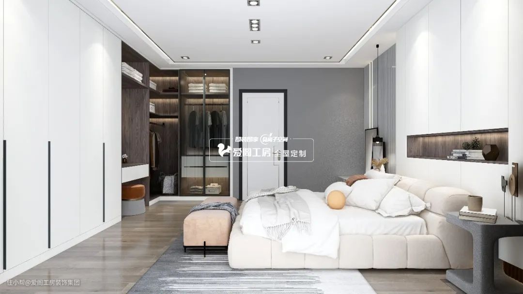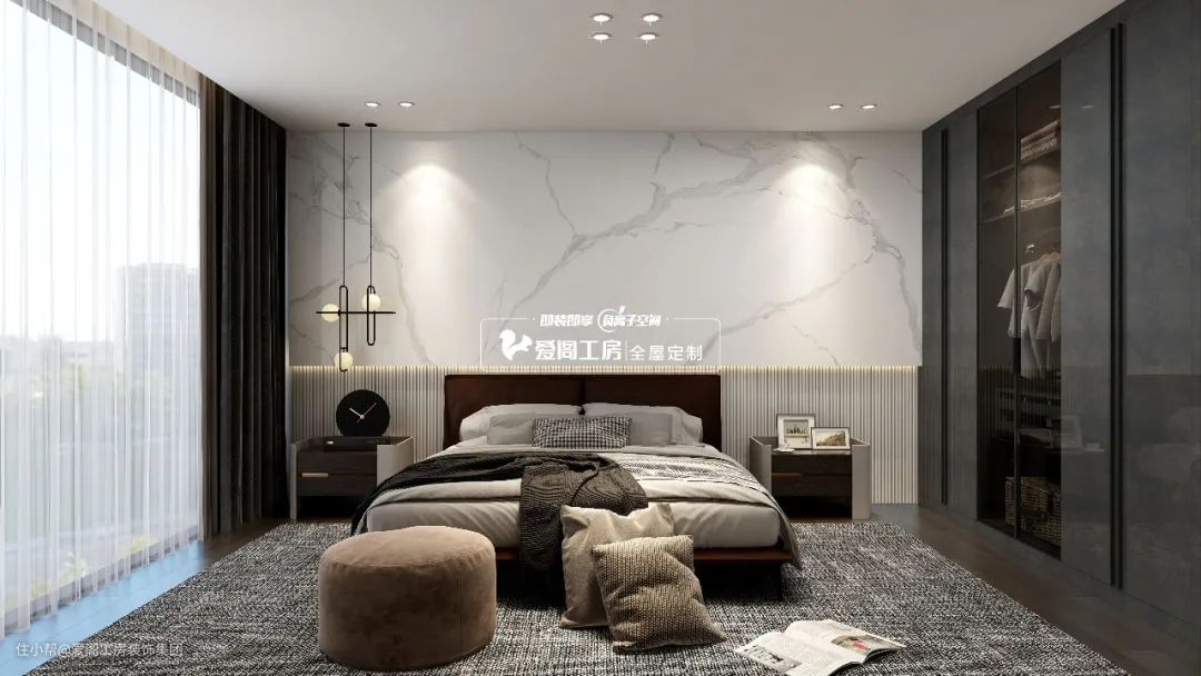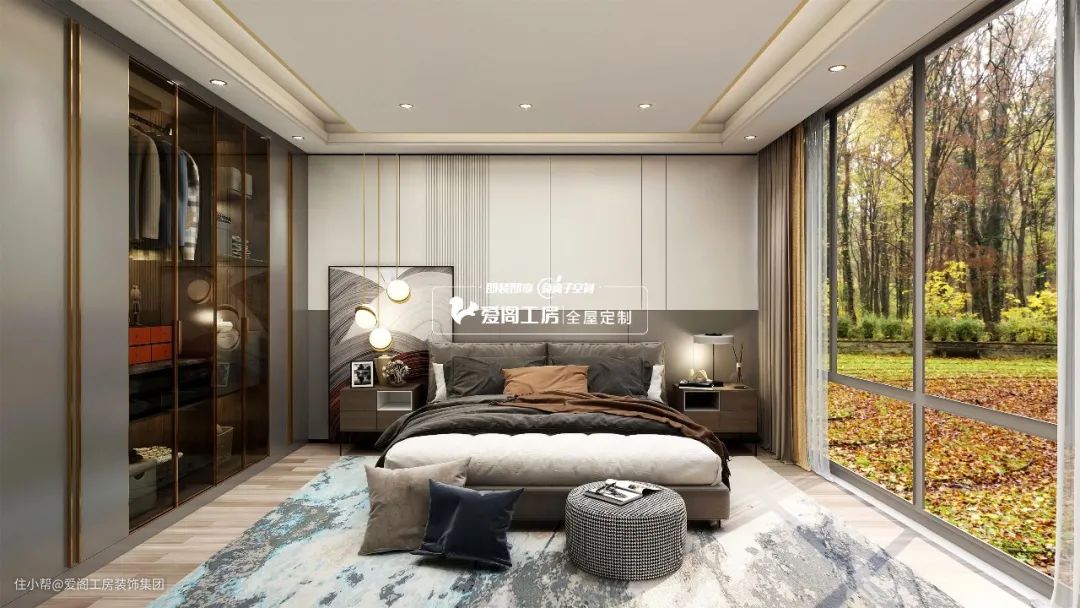 如果房间面积较大,可以摆放两个相同的床头柜,更具对称美感。