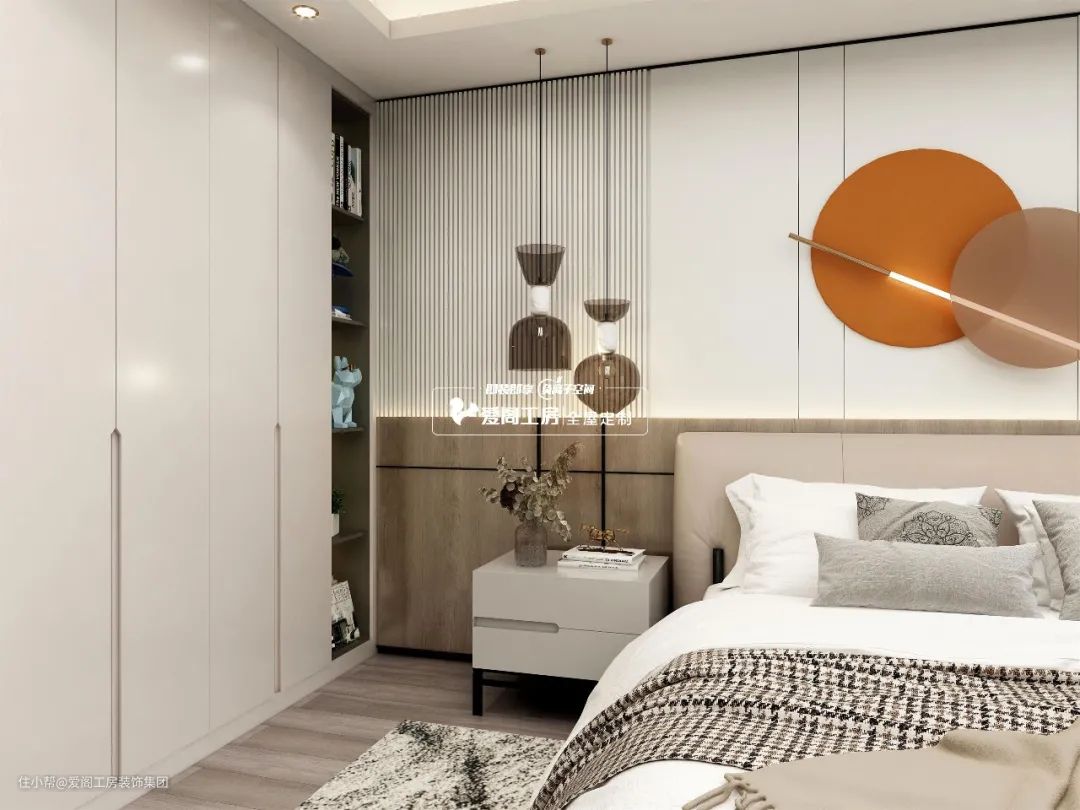 如果房间面积较小,建议只摆放一个设计感强烈的床头柜,可以减少房间单调性。