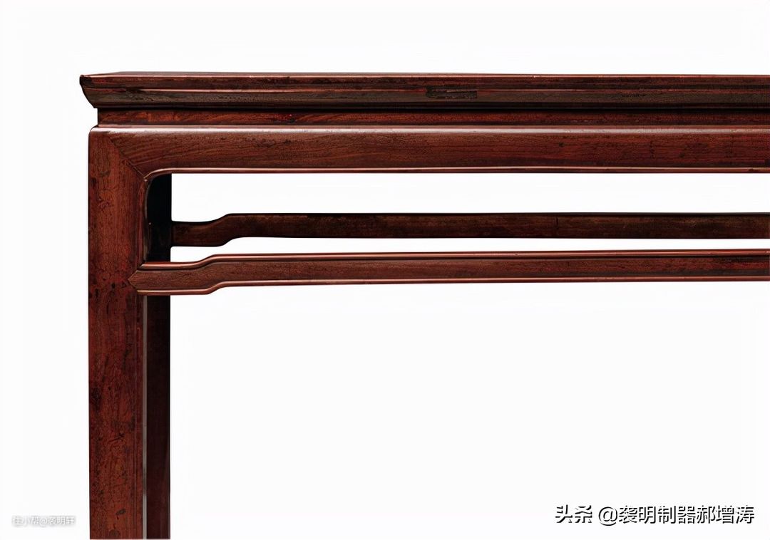 明清家具,为了稳定,腿间常用枨子连接。枨子有直枨和罗锅枨。罗锅枨就是枨子中间向上高起,能增加人腿在桌下的活动空间,也能增加线条的变化,让家具更好看。