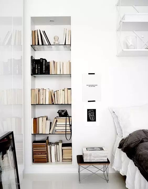 不同的房子不同的户型,而现在很多户型都会有一些不规则的空间,例如夹缝、拐角处等一些特殊的位置,可以安装几张隔板,做成类似壁龛的形式,一个简易版的壁龛就做出来了。这样既把很难利用的夹缝和拐角处利用上,又增加了储物功能,一举两得!