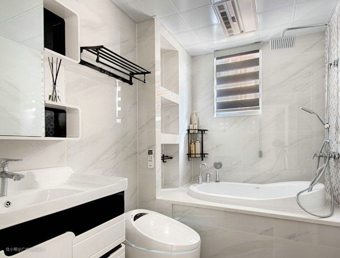 2.结实耐用:卫生间是家中最潮湿的地方,特别是淋浴区,墙壁上每天都会沾水,就算再耐用的置物架都无法抵抗经年累月的水汽侵蚀,而壁龛就不会有这个问题。因为卫生间的壁龛一般都采用包管和墙壁开凿的方法制作,所以等于和墙壁一样坚硬,且铺上了瓷砖也可以防水,用上个几十年都不容易坏。