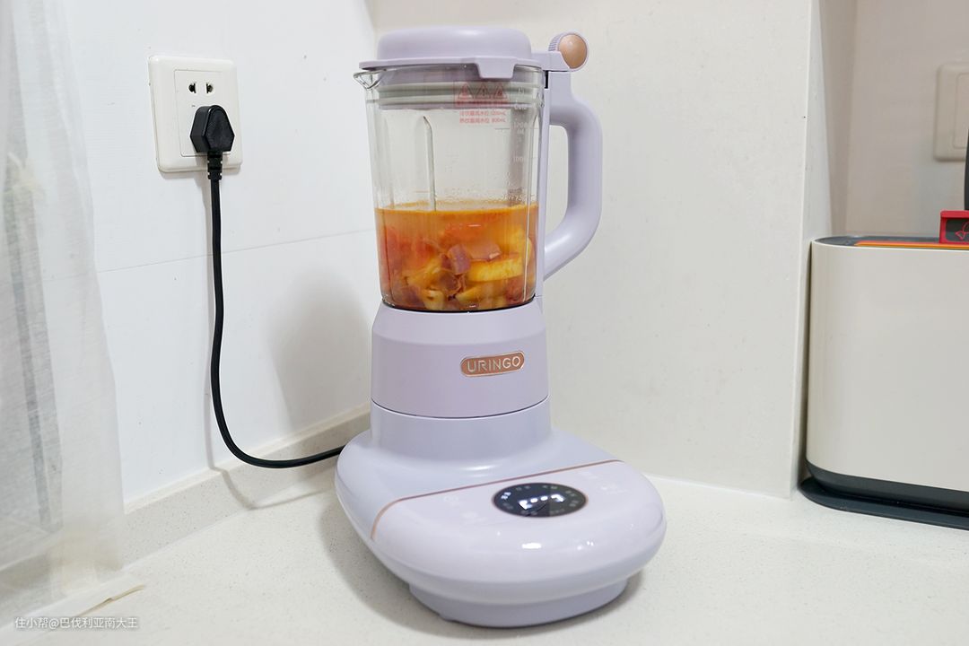 它的转速会比榨汁机、豆浆机高很多,打东西特别快!快到可以瞬间击破食物细胞壁,把它们打成细腻的渣渣,同时破壁机又自带加热熬煮的功能,所以打完就能直接喝,不仅大大节约时间成本,还简化了烹饪步骤。