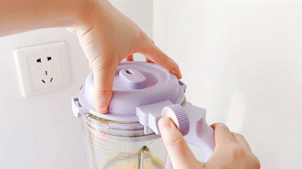 杯盖后侧这个圆形把手设计还挺方便的,一推锁紧,再一推解锁。而且它的设计是开盖即停,比较安全,盖子上有硅胶密封圈,防止溢出,不会因液体溢出烫伤哦~