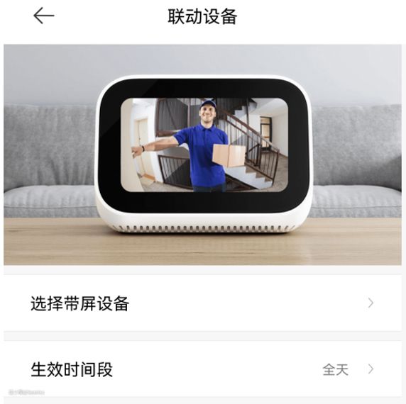 另外还可以和小爱带屏音箱联动,秒变可视对讲机,且支持变声,女性和小孩单独在家时建议使用男声,可以有效保护弱势群体的居家安全。