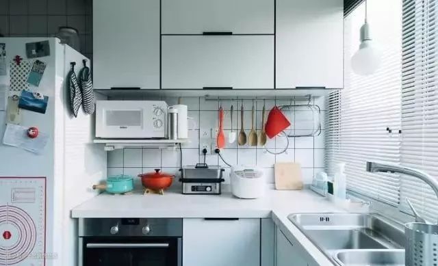 锅碗瓢盆,摆放也很讲究。常用的厨具应该摆放在顺手的地方,例如下面的橱柜。一些不常用的厨具,就可以放在高的地方,这样按照需求摆放就不会杂乱。