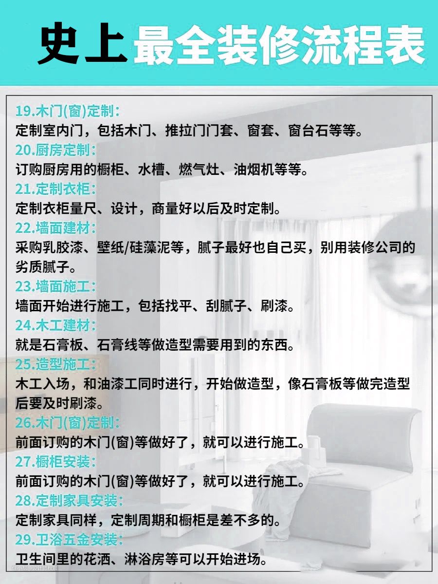 史上最全装修流程表!装修工期不耽误