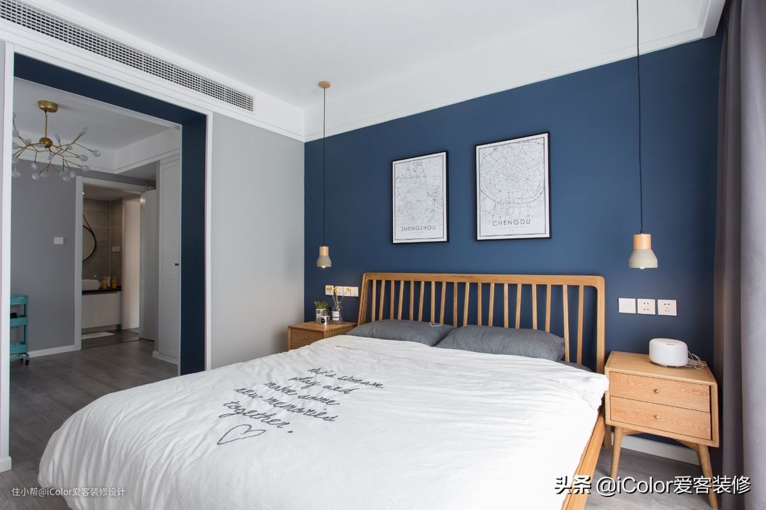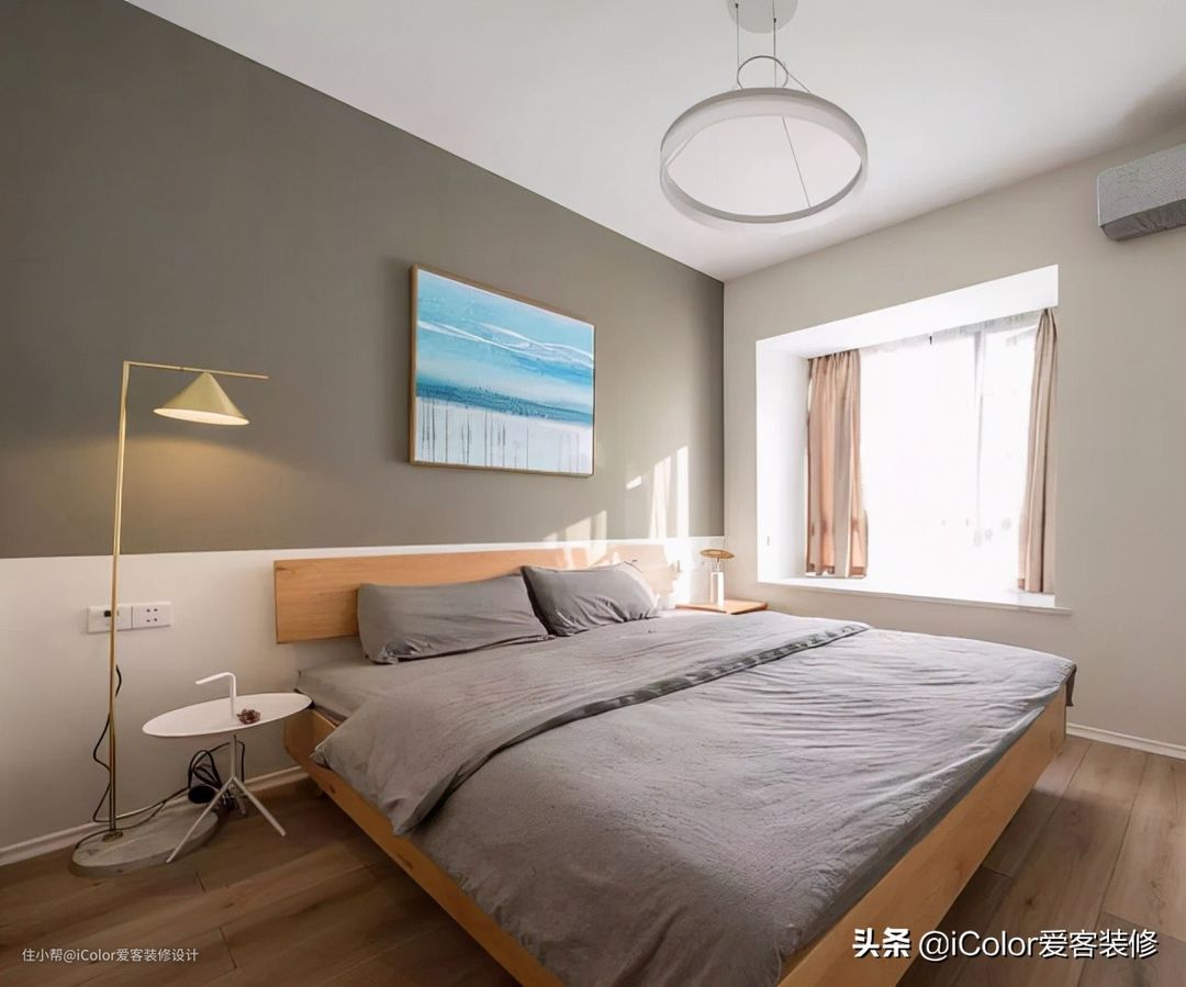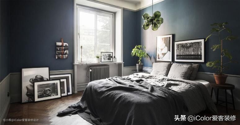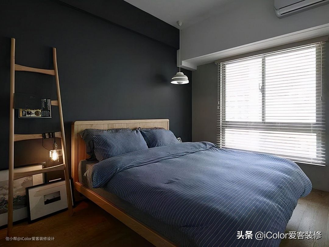 ✔ 相比之下,同样色深色,这样刷一面床头背景墙,其他墙面采用浅色系,白色或者灰色,再搭配木色家具,整个房间的采光就会好很多。
