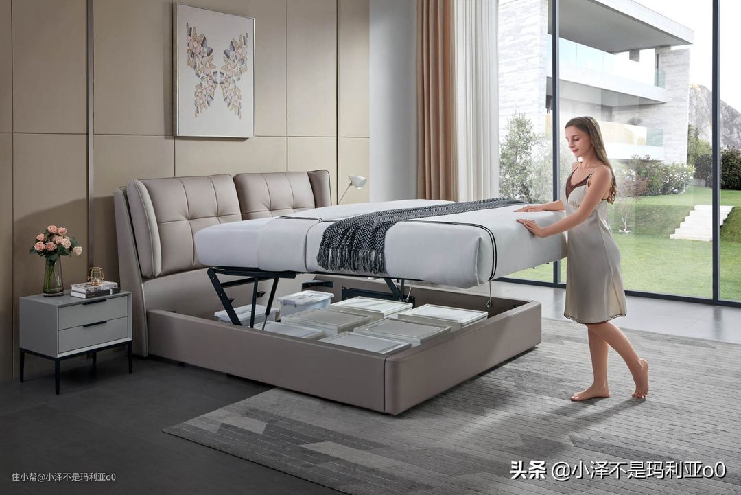 床可以说是卧室最重要的存在了,选购时建议大家尽量选择舒适饱满的款式。像这款C039真皮储物床,独立汉堡式海绵靠包,倚靠时松软无比,给你的头、背、腰坚实的支撑,绝对是赖床必备~