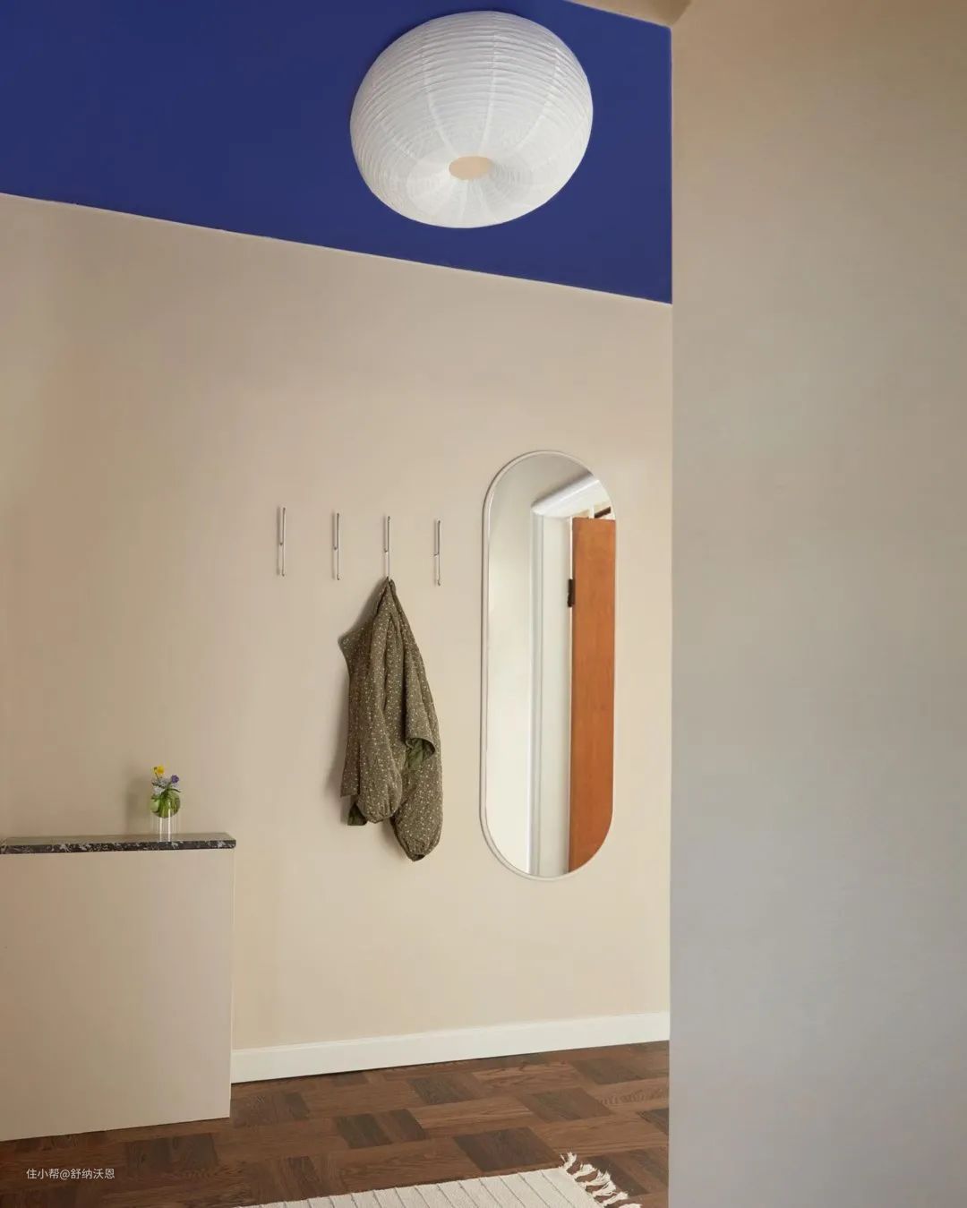 饱满而浓郁的克莱因蓝,本身就极具质感,高贵迷人又张扬神秘,大面积涂刷不仅能够凸显空间的艺术氛围,而且包容性很强,仿佛深夜的海面,沉静悠远,让人不由自主陷入这片蓝色里。