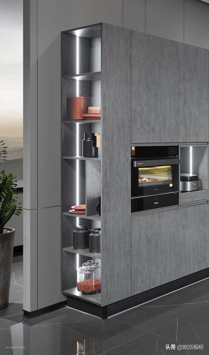 高柜,一个集收纳与颜值于一身的厨房收纳高手,在定制橱柜这一领域越来越受欢迎,因此本篇笔记就来和大家分享一下,欧派橱柜那些让人心动不已的高柜设计吧~