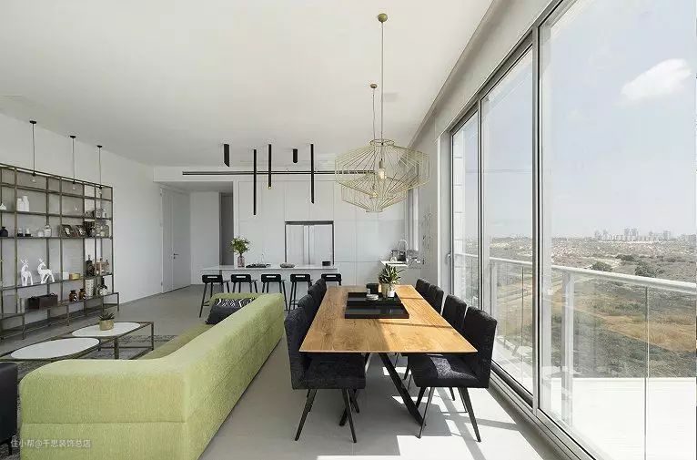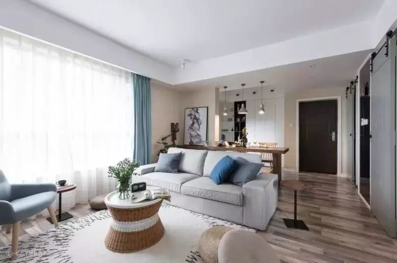 如果客厅是横厅设计,那么沙发背后就有可能是摆放餐桌了。沙发背后摆放餐桌,沙发可以作为是餐厅和客厅的分割,功能分区更明确。