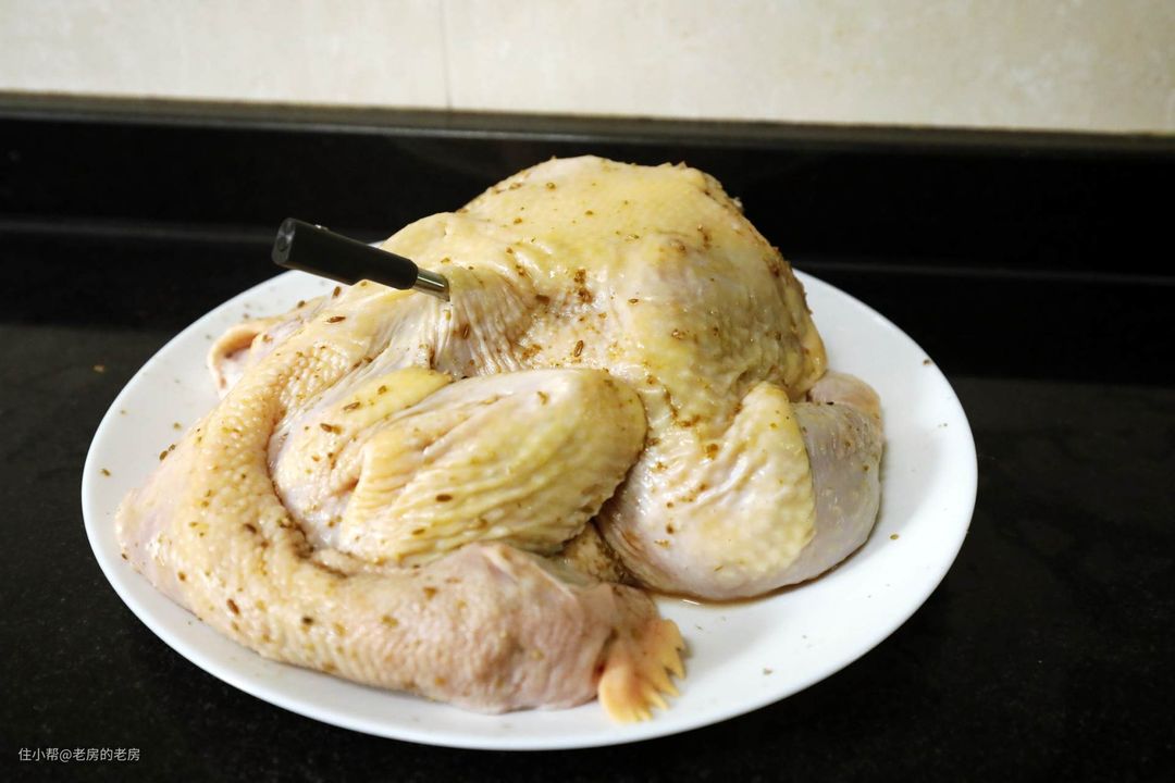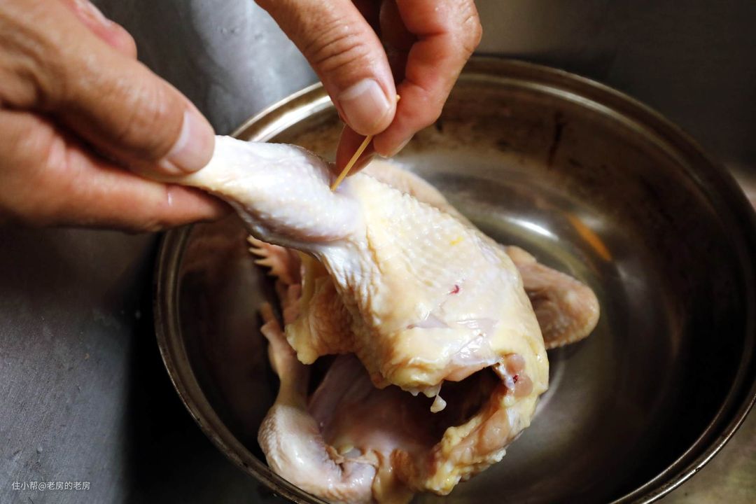 超市买的清理干净的整鸡,首先要做的第一件事就是,给它扎针!