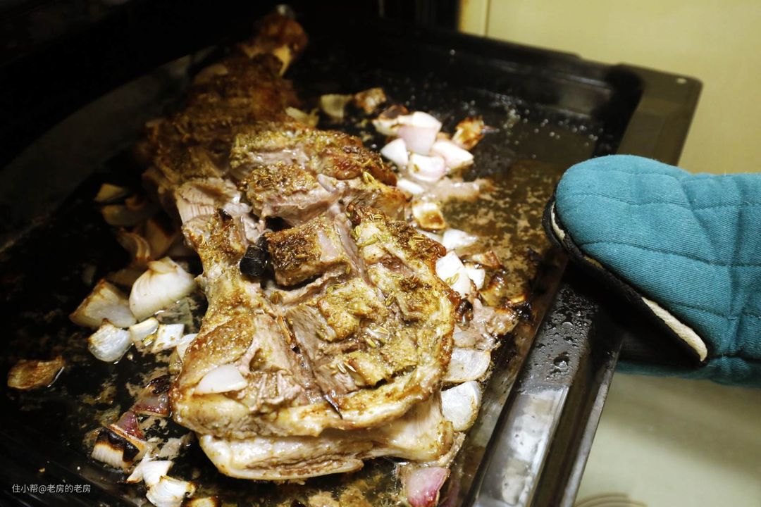 这下终于不怕由于羊腿大小厚度不一,却坚持于菜谱上的所谓多少时间而造成的半生不熟或者把肉烤老了。