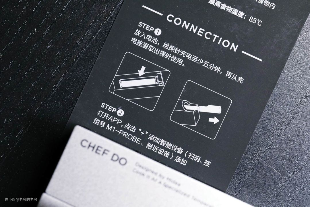 首先探针本体全身防水(IP68 级)、耐高温(外部环境 300 度),插进食物中直接丢进烤箱里、煎锅上,完全不用担心会损坏。