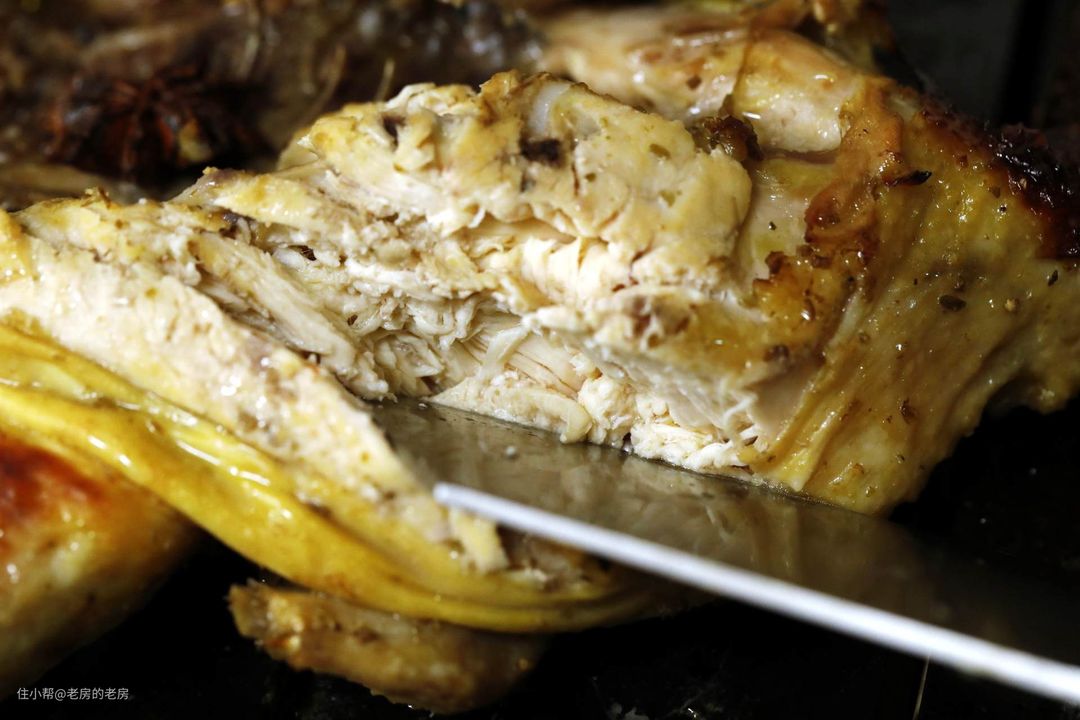 这个时候取出的肉就是刚好熟、不过头的状态。切开看一看,果然肉质鲜嫩,令人食指大动。