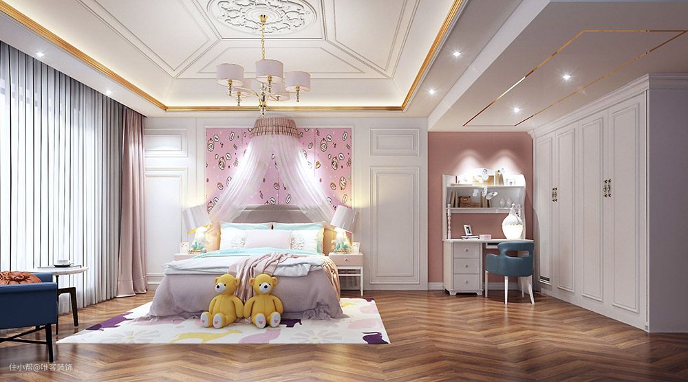第二种:欧式儿童公主装修风格,比较偏向欧式的家具,也不失公主仪式。