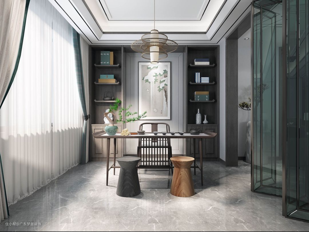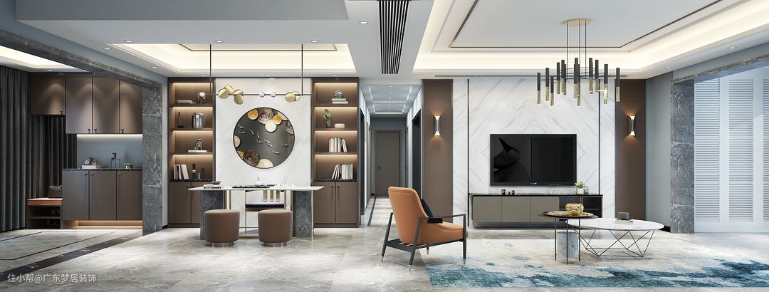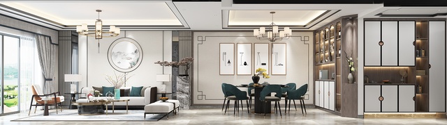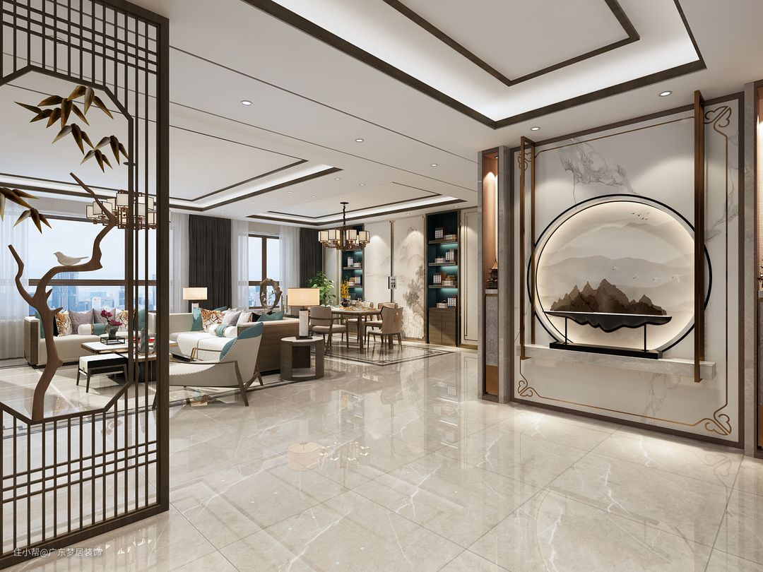 而新中式设计和轻奢风格相糅合,使空间焕发出新的可能——拥有新中式的简约灵动、优雅含蓄特点的同时,又融合轻奢风的高雅质感及格调。