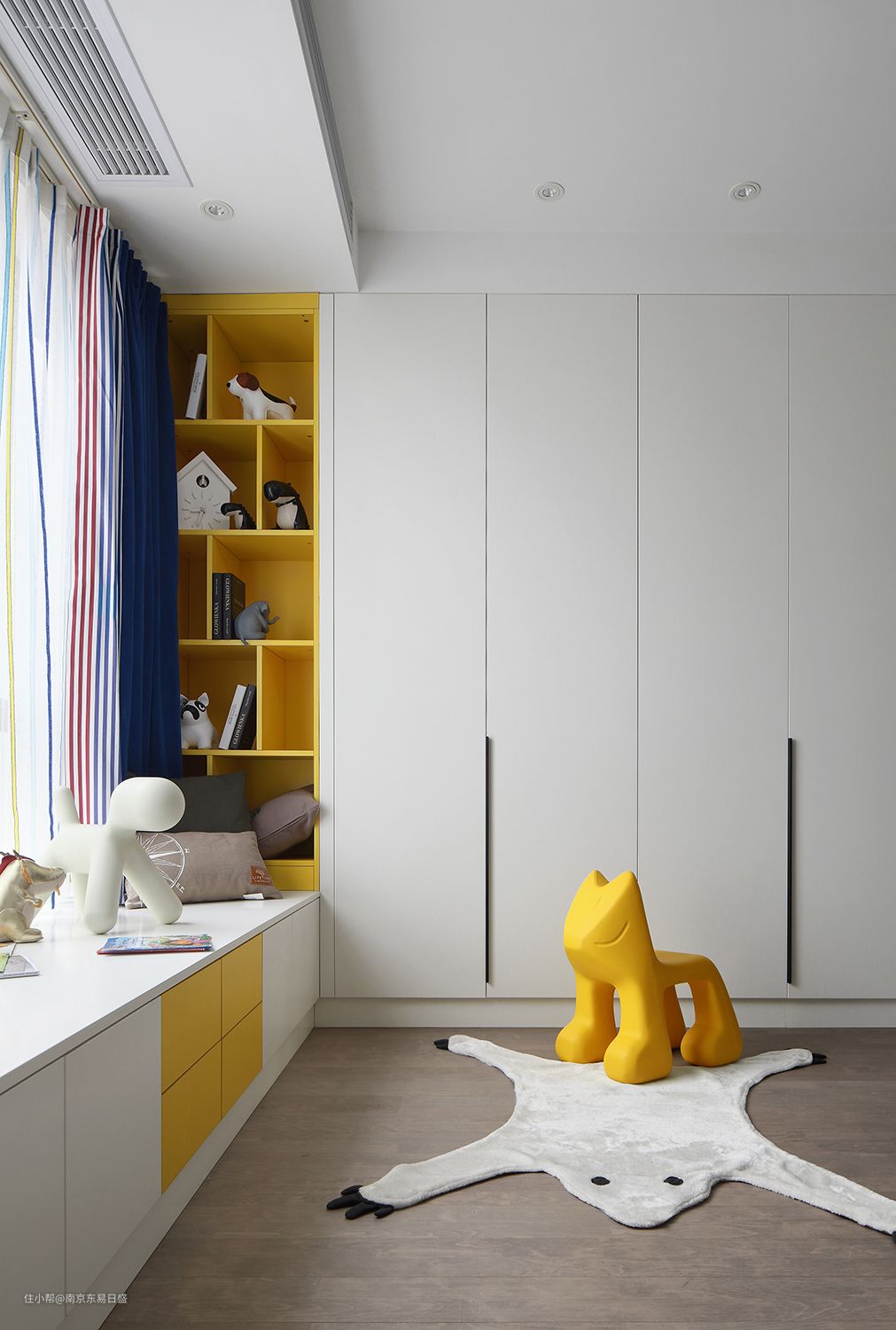 小朋友代表的是天真烂漫,采用亮眼的樱草黄元素进行装饰。形状各异小动物装饰品的介入使得儿童房充满童趣、动感与跳跃,一个孩童的小天地由此成型。