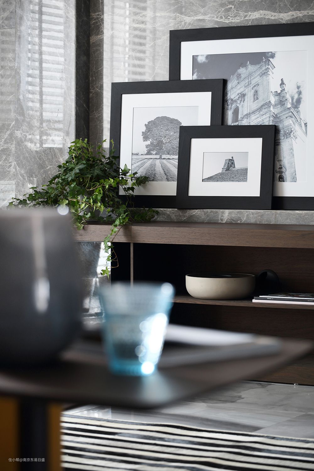 色彩的交汇,布艺的质朴,平衡着理性与感性。再铺上厚厚的一层的地毯,光脚踩于其上,与空间进行无声地对话。