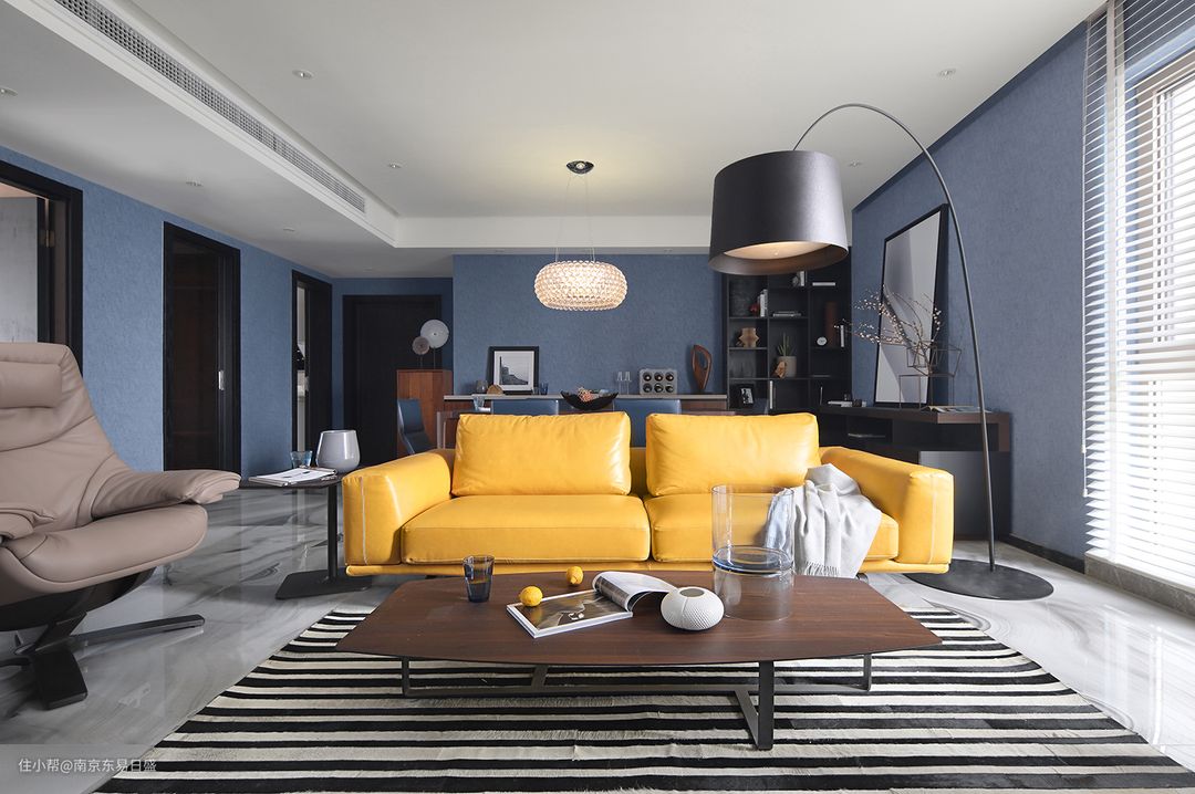 以蓝+黄为主打色的空间,墙壁艺术挂画无疑是锦上添花,让空间组合更柔和~