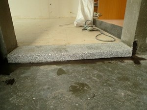来解释一下,浴室门槛下的防水做法,主要防水是由弹性水泥负责,但在上弹性水泥前,会在拆除完的地面上先上水泥砂浆,来平整地面;弹性水泥通常会上两道,等第二道干了后,就就可以贴过门石;正确的防水是到了门槛处,弹性水泥的高度要高一点,高1~2公分即可,太高也不合适!