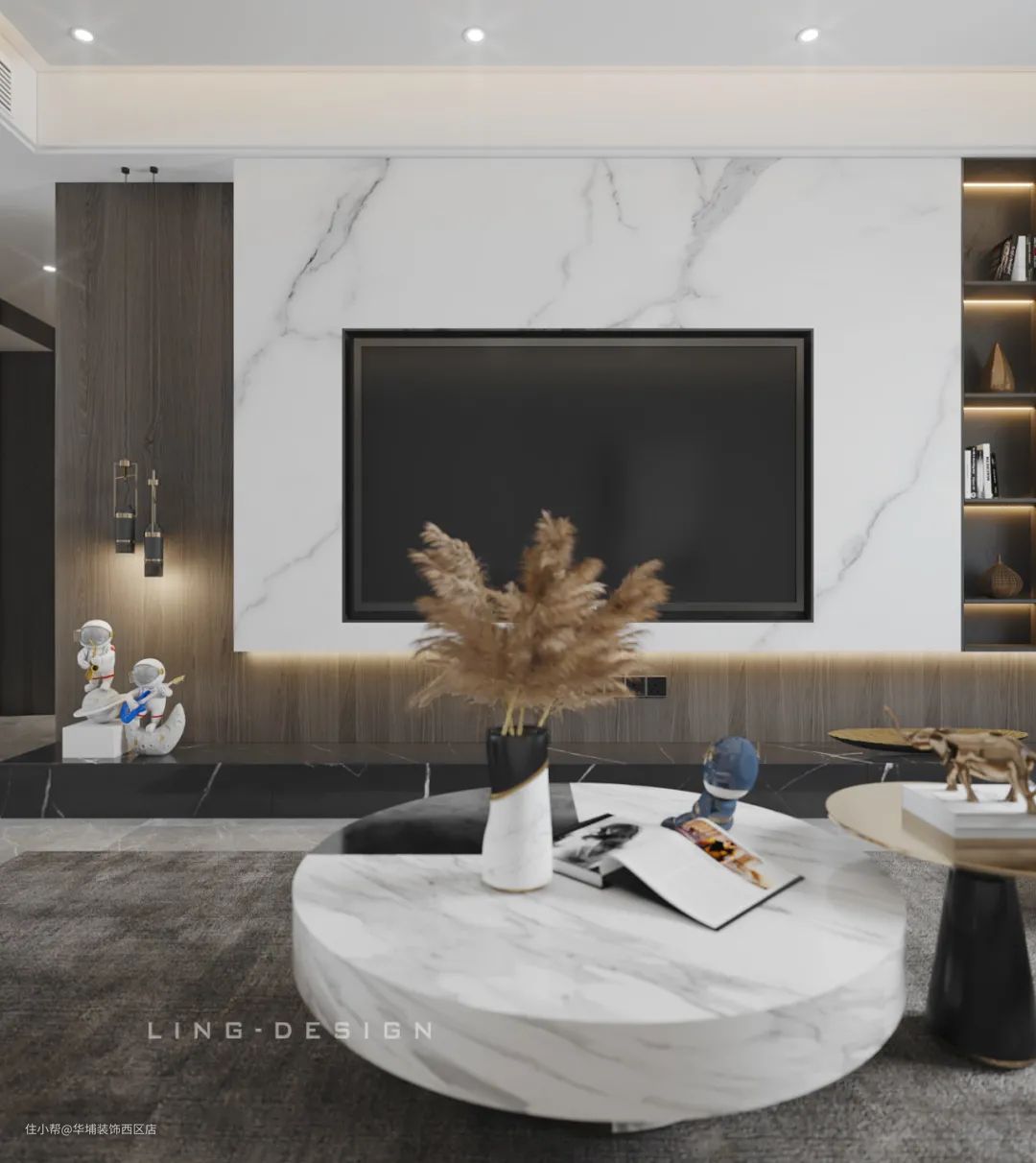 143平现代风,木饰面与大理石碰撞,一切都恰到好处!