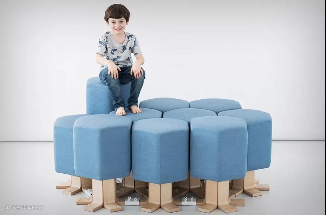其中每个小六边形座椅既可以充当一个小家具使用,又可以与其他一起组合成功能多样的沙发椅。