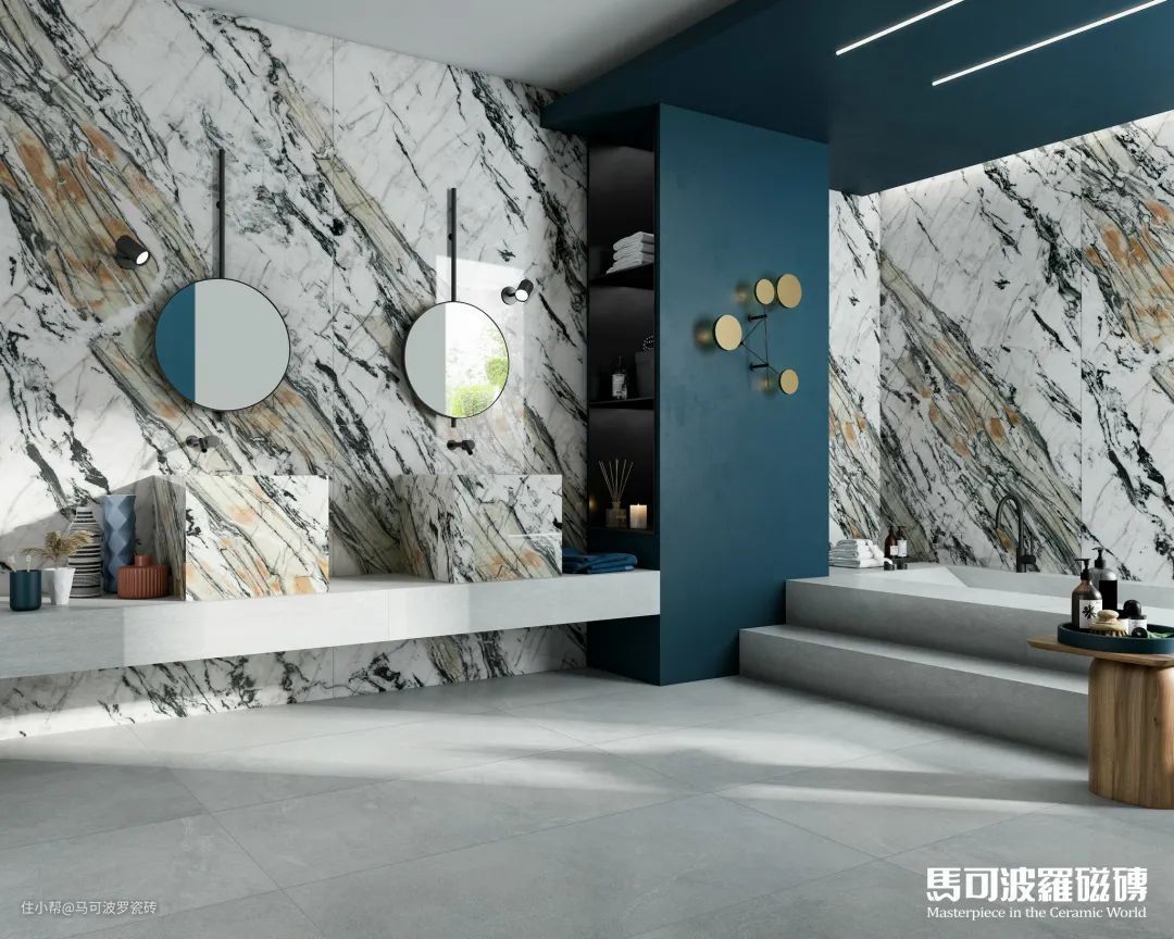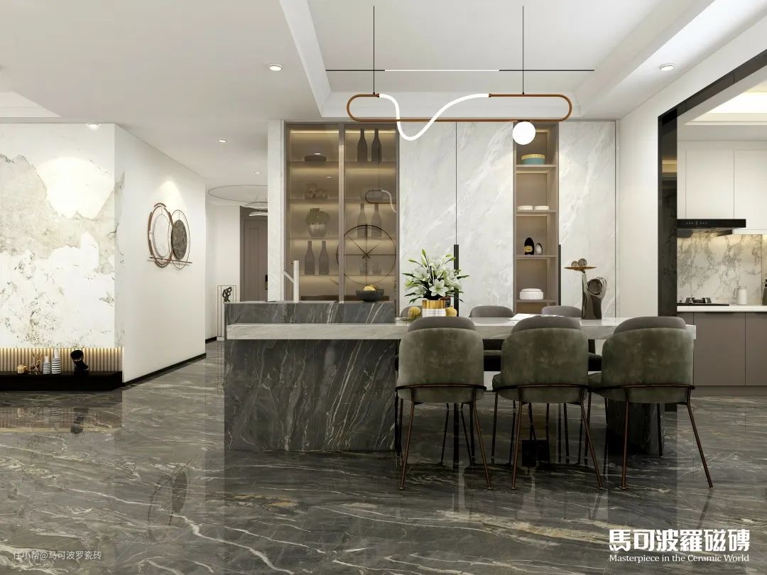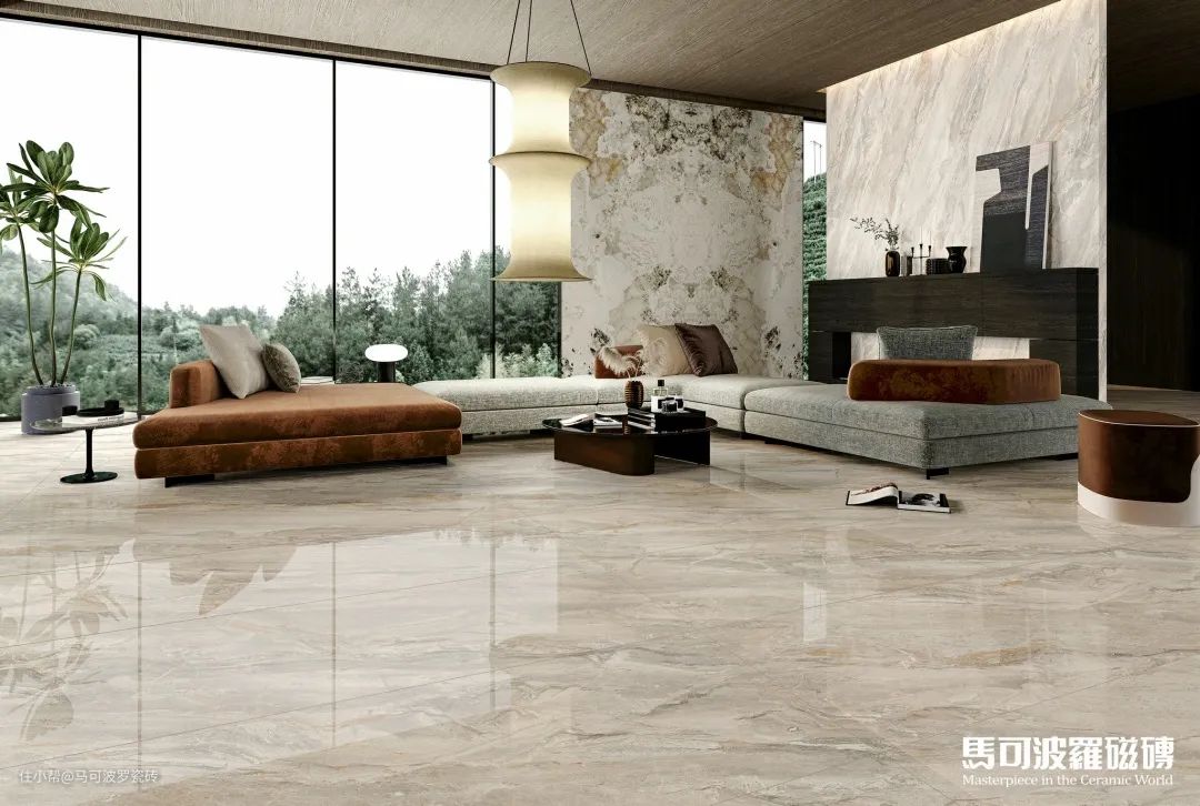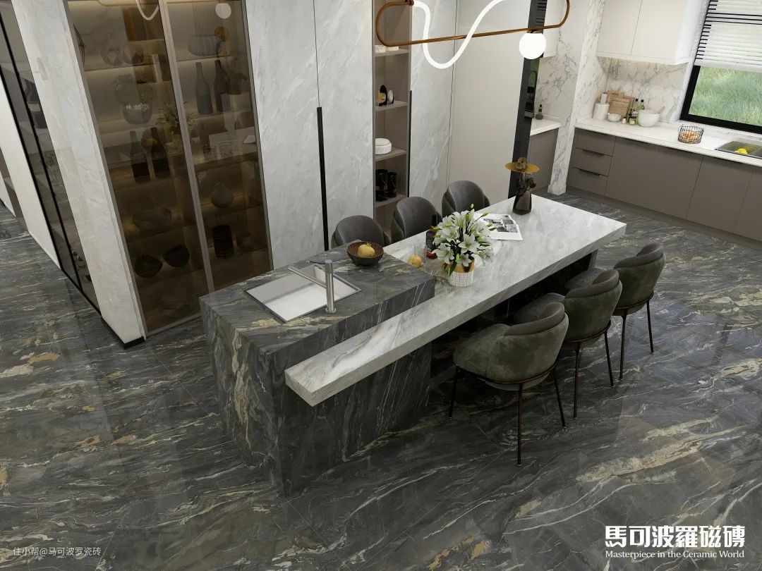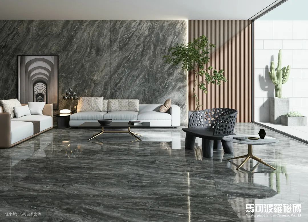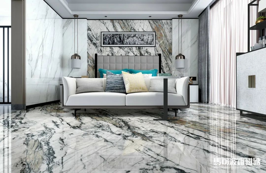 目前,马可波罗瓷砖共推出两片对纹、多片连纹、AI随机无限连纹等多种连纹类型,包含1600×3200、1200×2400、800×2400、900×1800mm等多种规格,满足不同空间、不同功能运用,既能“上墙下地”,也可应用于桌面、橱柜等创意铺贴及建筑外墙等户外领域。