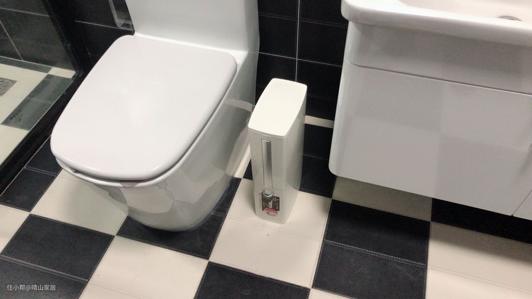 马桶刷、垃圾桶、垃圾袋放置处是集合在一起的,一个基本就能满足卫生间的所有需求了,对空间紧张的小卫生间非常友好。